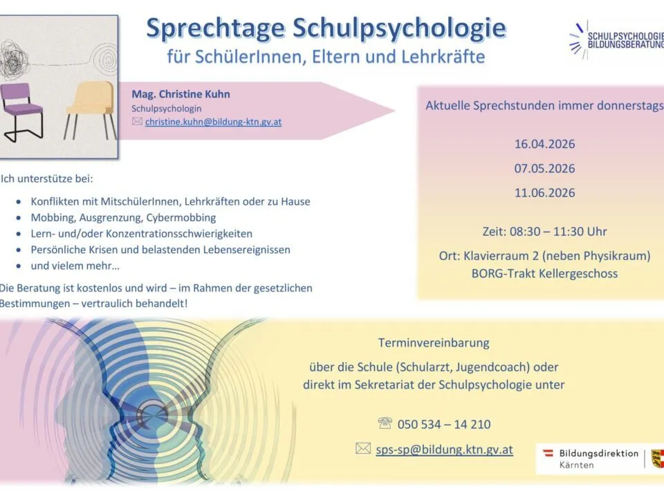 Neue Sprechtage der Schulpsychologie am Porciagymnasium