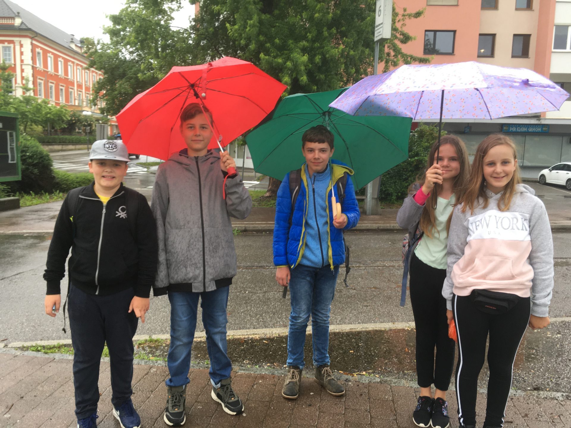 Nachdem wir andere Kartoffelblätter von den Kartoffelkäfern befreit hatten, fanden Kerstin und Elena insgesamt 10 vierblättrige Klees. Als wir den Wassersprühwagen und die Packstation besichtigt hatten, von der aus die Ernte der Beete nach ganz Österreich verschickt wird, fuhren wir mit dem Bus nach Spittal zum BRG zurück.