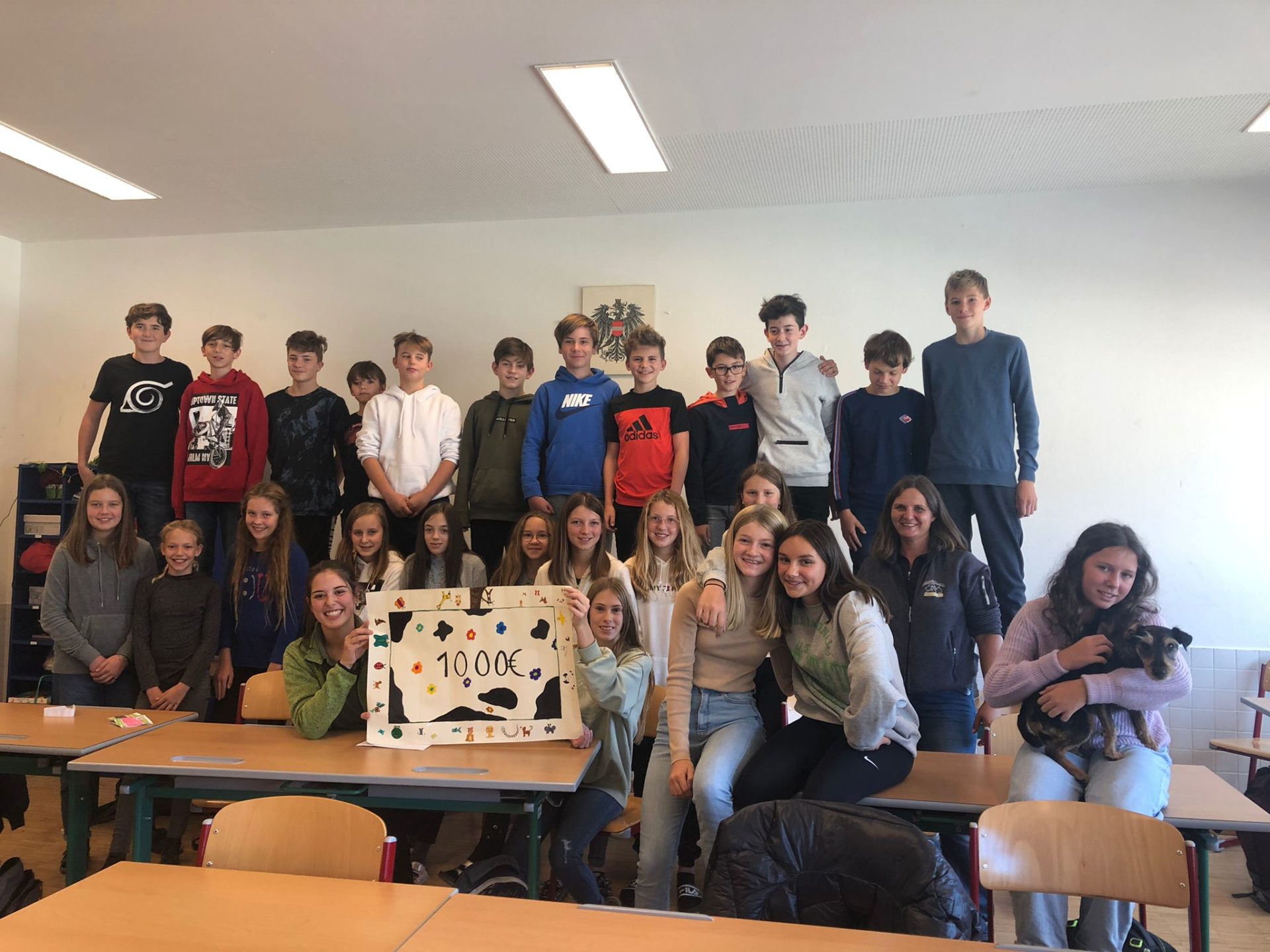 2. November 2021Im Rahmen einer sehr informativen Cld- Stunde mit zwei Vertreterinnen des Villacher Tierheims wurde den Kindern viel aus dem „Alltag“ im Tierheim erzählt und auch gleich ein Hund mitgebracht. Den Spendenbetrag über 1000€, den die Schüler/ innen im Rahmen eines Sozialprojektes „erlaufen“ sind, überreichten die Schüler/innen durch einen selbstgestalteten Scheck. Die Freude war auf beiden Seiten groß.