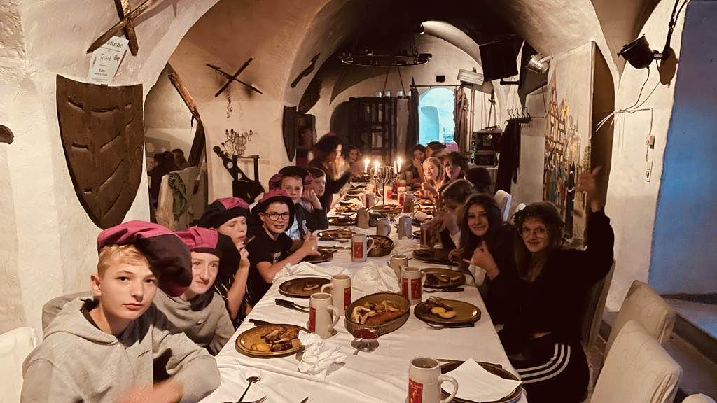 4. Oktober 2023Die 3br verbrachte ihre CLD-Gemeinschaftstage vom 27. bis 29. September in Friesach. Am Programm standen unter anderem eine mittelalterliche Begrüßung, ein Besuch beim Burgbauprojekt, ein abendliches Ritteressen, eine Nachtwanderung durch Friesach, ein Besuch der Schokoladenmanufaktur Craigher sowie ein Vormittag im Zeichen der Kräuter- und Naturkunde. Außerdem besuchte uns Herr Pfarrer Wurzer, um mit der Klasse eine Andacht in der Stadtpfarrkirche zu feiern.