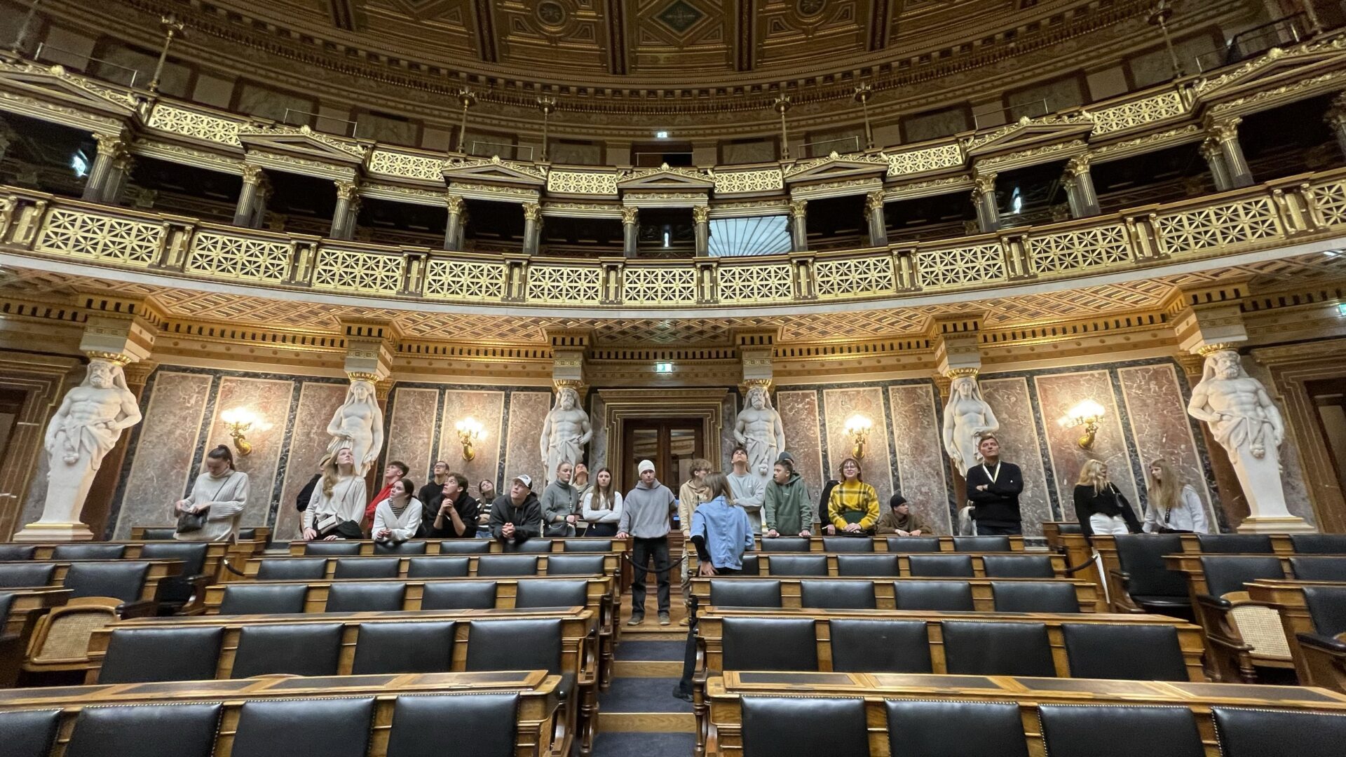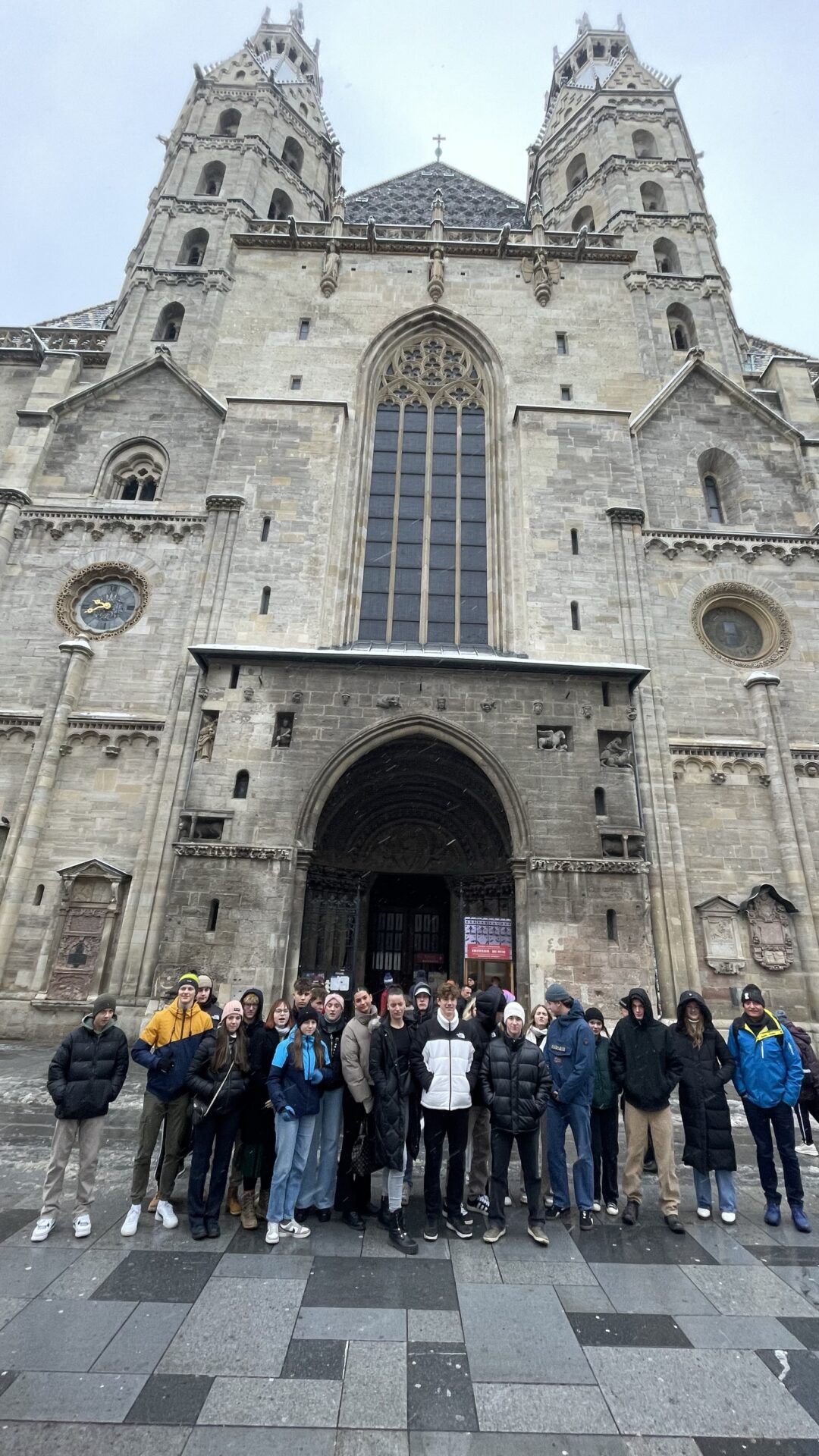 13. Dezember 2023Im Rahmen der Wien-Exkursion zu den Weltreligionen besuchten die 8. Klassen verschiedene religiöse Zentren Wiens, wie die Österreichische Buddhistische Gesellschaft, die Islamische Religionsgemeinschaft, die Griechische Orthodoxie, den Stephansdom und das Jüdische Museum Wien. Des Weiteren standen auch der Besuch des neu renovierten Parlaments sowie die „Kleinbürgerhochzeit“ von Bertolt Brecht in den Kammerspielen der Josefstadt auf dem Programm. Der Christkindlmarkt am Spittelberg bot schließlich noch eine schöne adventliche Atmosphäre, wo beim Bummeln durch die verschneiten Gassen verschiedene Köstlichkeiten probiert und die vielen Stände mit Handwerkskunst bestaunt werden konnten.