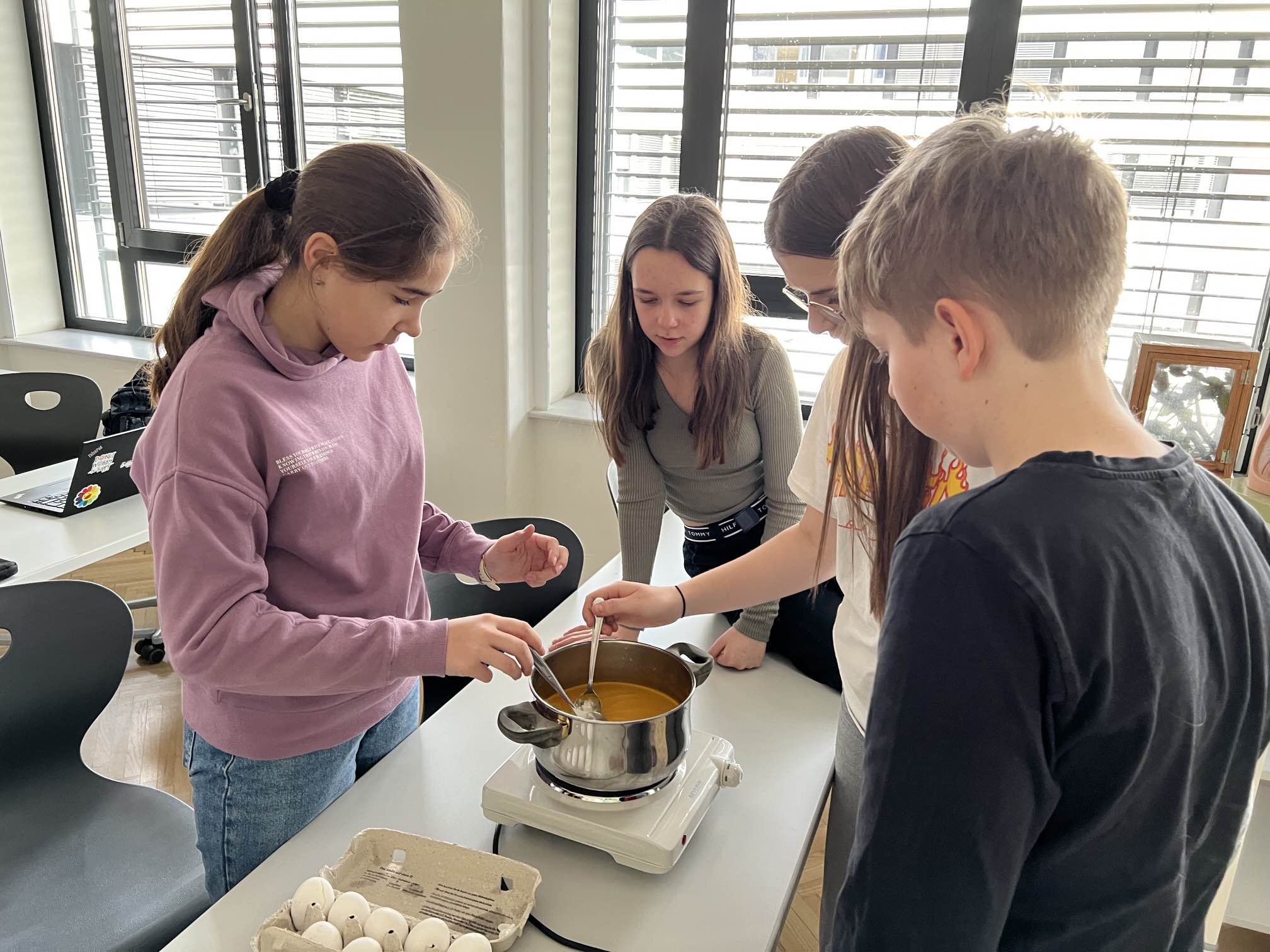 6. März 2024Die Laborgruppe Biologie der 3ar hat mit Pflanzenfarbstoffen Ostereier gefärbt. Kurkuma lieferte wunderschöne gelb gefärbte Eier. Bei den Eiern, die mit Schwarzbeeren gefärbt wurden, ließ die Farbe etwas auf sich warten, lieferte dann aber doch auch ein zufriedenstellendes Ergebnis.