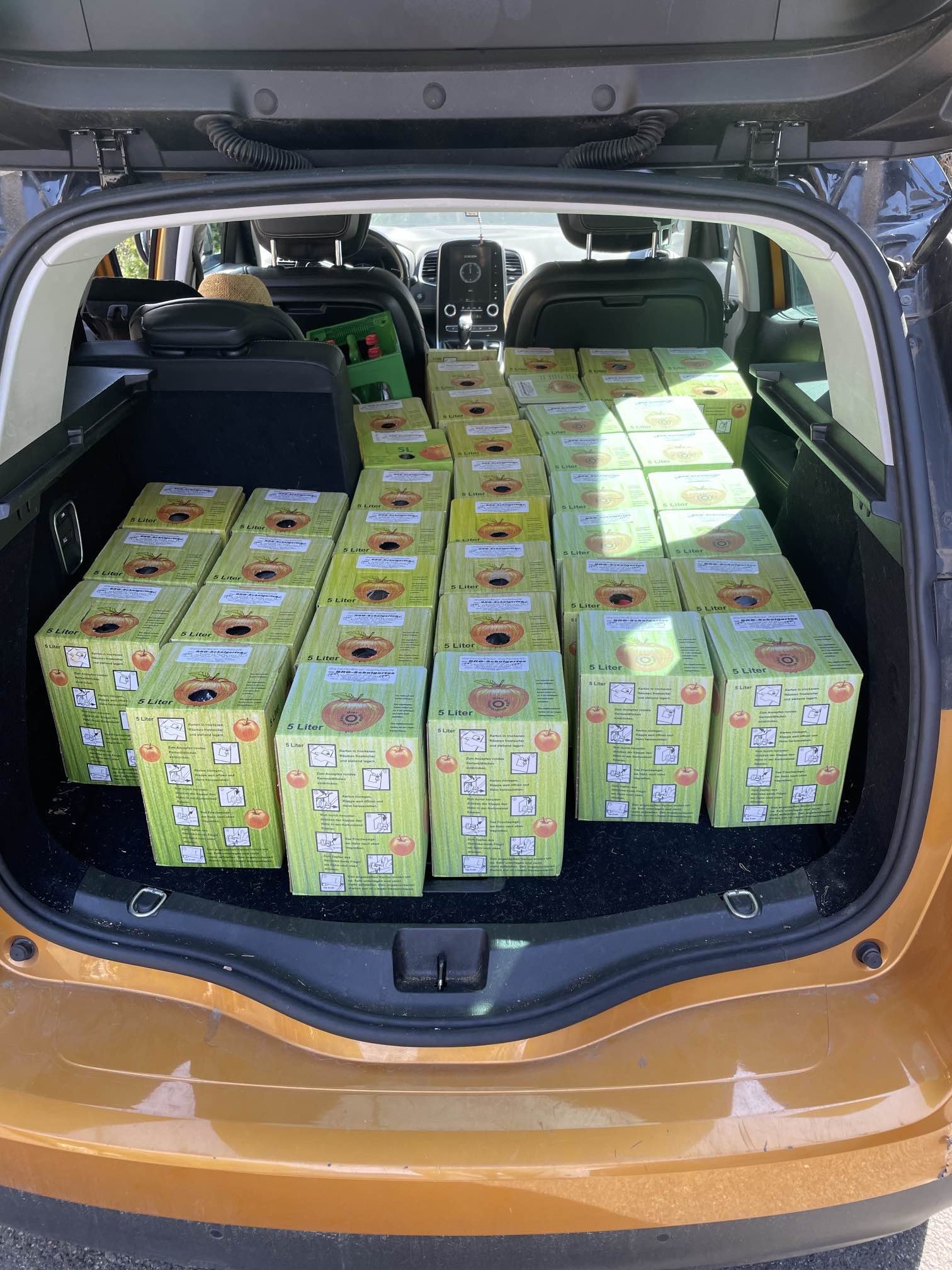 24. September 2024Heute, am Samstag, den 21. September, war ich bei der Obstpresse vom „Uhle“ in Pobersach, um die bereits dritte Ladung an Äpfeln aus dem Obstgarten bei der Arena vorm Schuleingang pressen und in 5-Liter-Portionen abpacken zu lassen. Insgesamt über 50 Packerln, also über 250 Liter Saft waren es heuer…! 😃