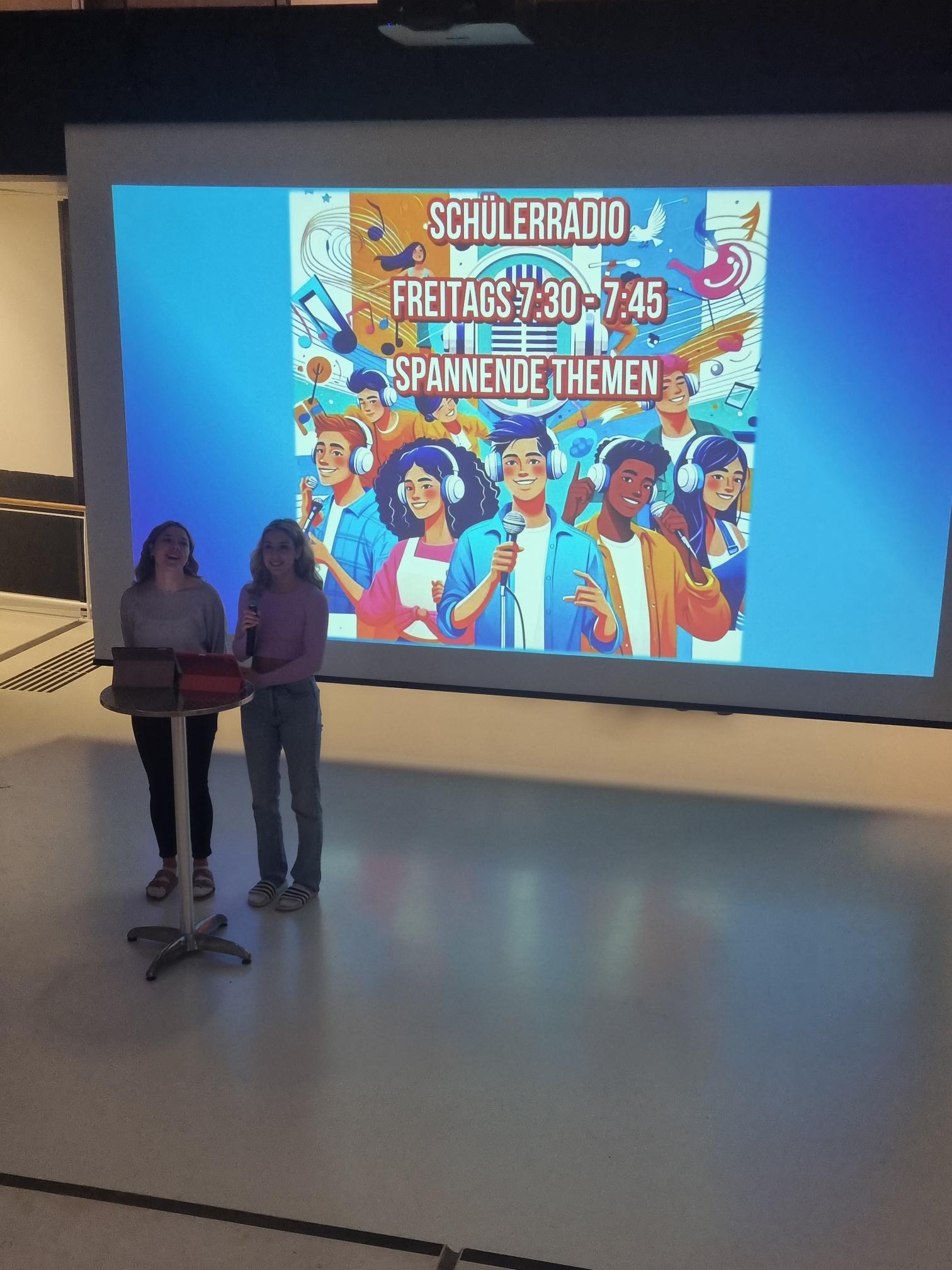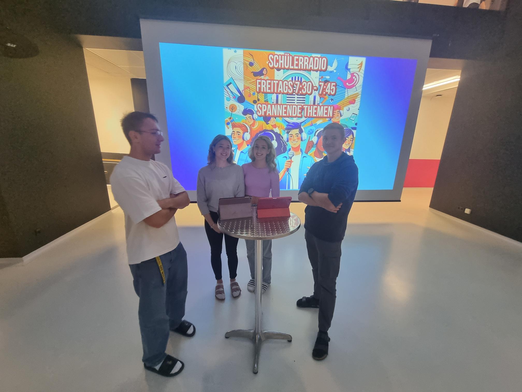 Ab sofort präsentiert die ME-Gruppe der 8. Klassen jeden Freitag live von 7:30 Uhr bis 7:45 Uhr in der Arena eine Schülerradio-Sendung.