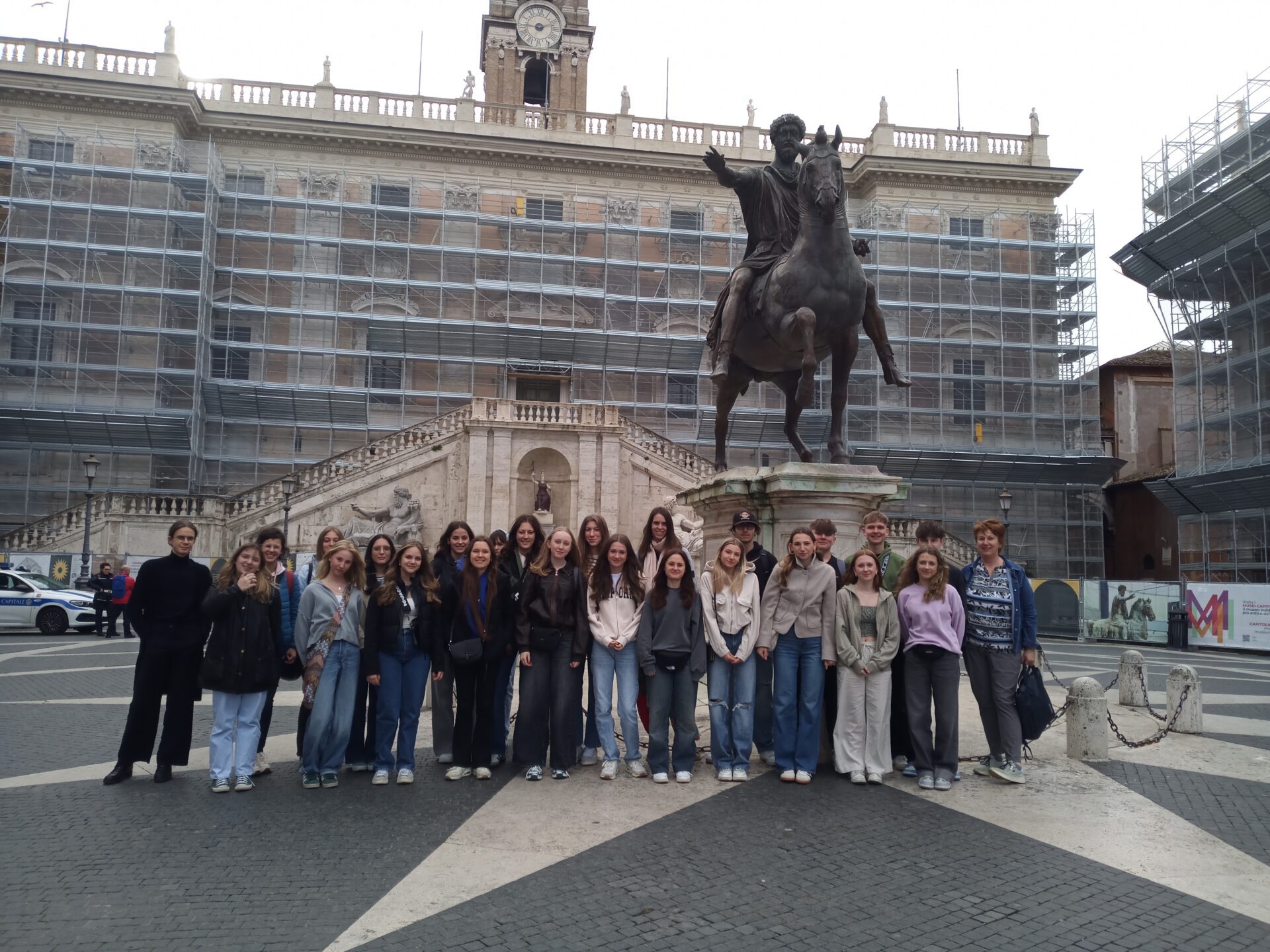 14. April 2025Vom 31. 03. bis 06. 04. 2025 eroberten die Lateiner der 7. Klassen mit ihrem Chauffeur Romanus die ewige Stadt Roma, caput mundi. Unser Lager schlugen wir in der Nova Domus Aurelia auf und starteten von dort unsere Feldzüge. Belagert wurden unter anderen das Kolosseum, das Forum Romanum, das Pantheon und das Kapitol, welches einen regelrechten zweiten Galliersturm erlebte. Gott sei Dank verriet uns das Geschnatter der Gänse nicht. Mit friedlichen Absichten marschierten wir im Vatikan ein, wo wir den glamourösen und prunkvollen Petersdom besichtigten. Von der Kuppel aus, die wir unter größter Anstrengung erklimmen mussten, hatten wir einen optimalen Überblick über das von uns neu eingenommene Reich. Erobern konnten wir nur dank der besten italienischen Verpflegung in den zahlreichen Tabernen. Unter dem Motto „Veni, Vidi, Vici“ verließen wir Rom und verlagerten unsere Truppen nach Pompeji am Fuße des Vesuvs. Neugierig ließen wir uns von den beiden Ductrices Marilis und Rita durch die vom Vulkan verschüttete und deshalb so gut erhaltene Stadt führen. Trotz neuer Erkenntnisse merkten wir sofort, dass dort für uns nichts mehr zu holen ist. Als wir zu unserem nächsten Ziel aufbrechen wollten, teilte uns unser Chauffeur Romanus mit, dass unser Vehiculum einen Platten hat. Nach einer Verzögerung von mehreren Stunden konnten wir dann endlich unseren Eroberungsfeldzug fortsetzen. Die Infrastruktur war jedoch für unser großes Fuhrwerk nicht gegeben. Wir erreichten trotz enger, kurviger Straßen und Dunkelheit unseren zweiten Lagerplatz, Villagio Nettuno, direkt am Meer. Nach dem Kampf mit der nächtlichen Kälte konnten wir am nächsten Morgen das phänomenale Meerespanorama so richtig genießen. Wir brachen auf und peilten die Stadt Sorrent an, um dort deren Läden zu plündern. Danach freuten wir uns über die erbeuteten Schätze, darunter befanden sich Souvenirs jeglicher Art und sogar zwei Zitronenbäumchen. Nur die Tapfersten wagten sich auch ins eiskalte Meer. Zum Abschluss wurde der erfolgreiche Siegeszug mit einer Pizzaparty gefeiert, ehe wir auch schon wieder die Koffer packen mussten. Beladen mit Schätzen und neuem Wissen bestiegen wir wieder unser Vehiculum und traten die 15-stündige Heimreise an.