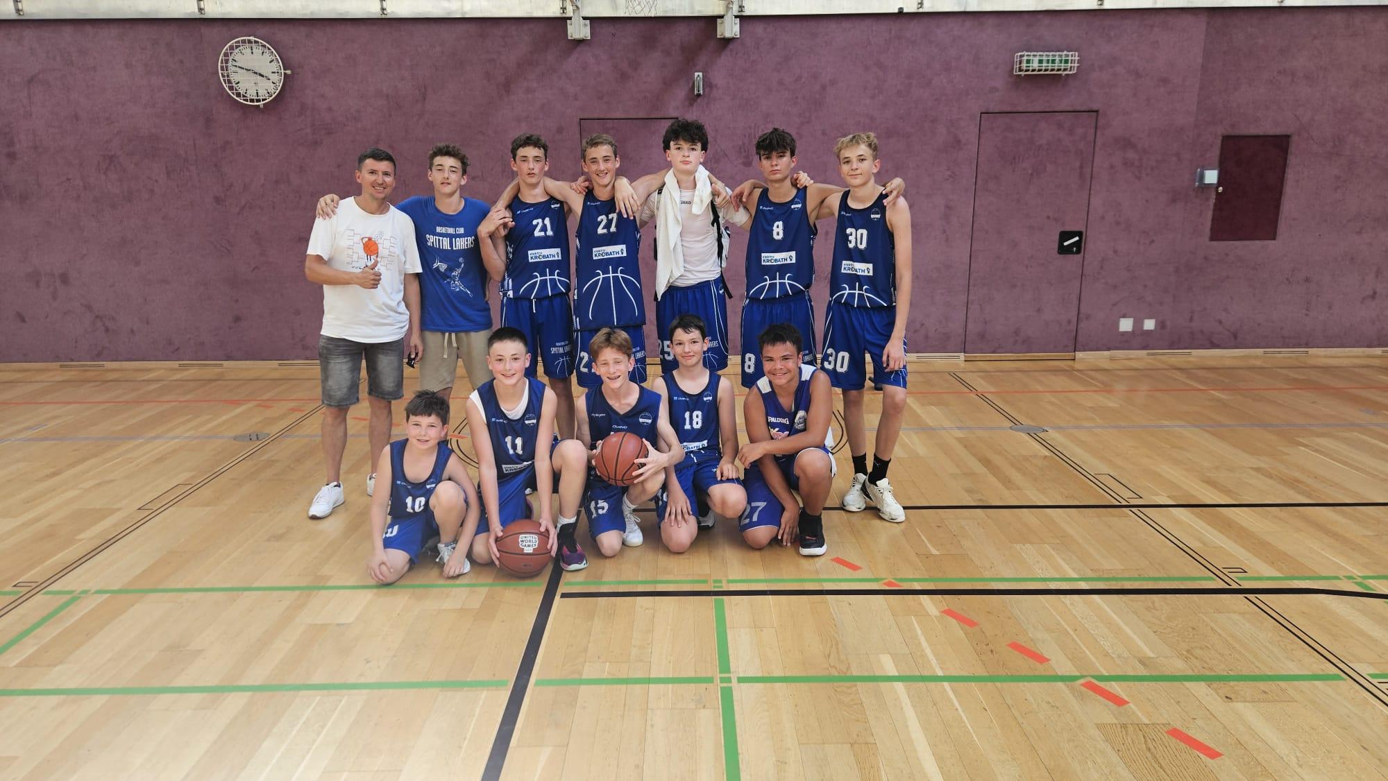 23. Juni 2025Bei den diesjährigen United World Games vom 19. bis 22. Juni in Klagenfurt konnten einige unserer Schüler:innen in der Sportart Basketball U14 nicht nur wertvolle Erfahrungen sammeln, sondern auch gute Erfolge erzielen. Bei den U14 Boys spielten unter anderem für die Spittaler Lakers Paul Trodt (4ar), Elias Auer (4br), Julian Kalt (4g), David Resch und Philipp Mößlacher (beide 3br) sowie Tristan Banko (2c) und Leonardo Zivkovic (2f). Sie konnten von 30 internationalen Teams den stolzen 11. Platz erreichen.