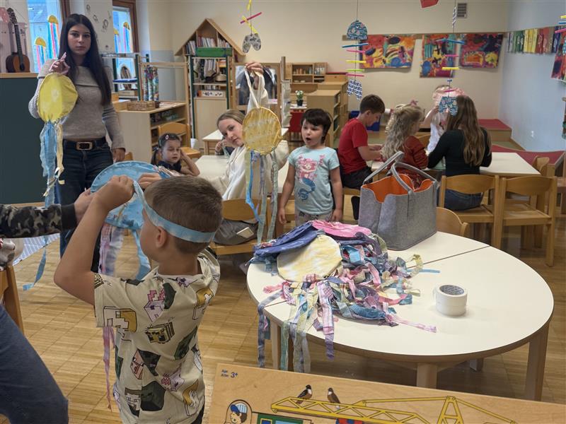 3. Oktober 2025Am 23. und 30. September 2025 fand ein besonderes Kreativprojekt zwischen der 4ar Klasse und dem Kindergarten Pusarnitz statt. Die Kinder färbten und bastelten gemeinsam bunte Windobjekte für ihre Gärten.