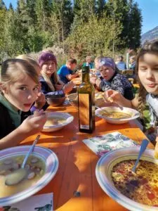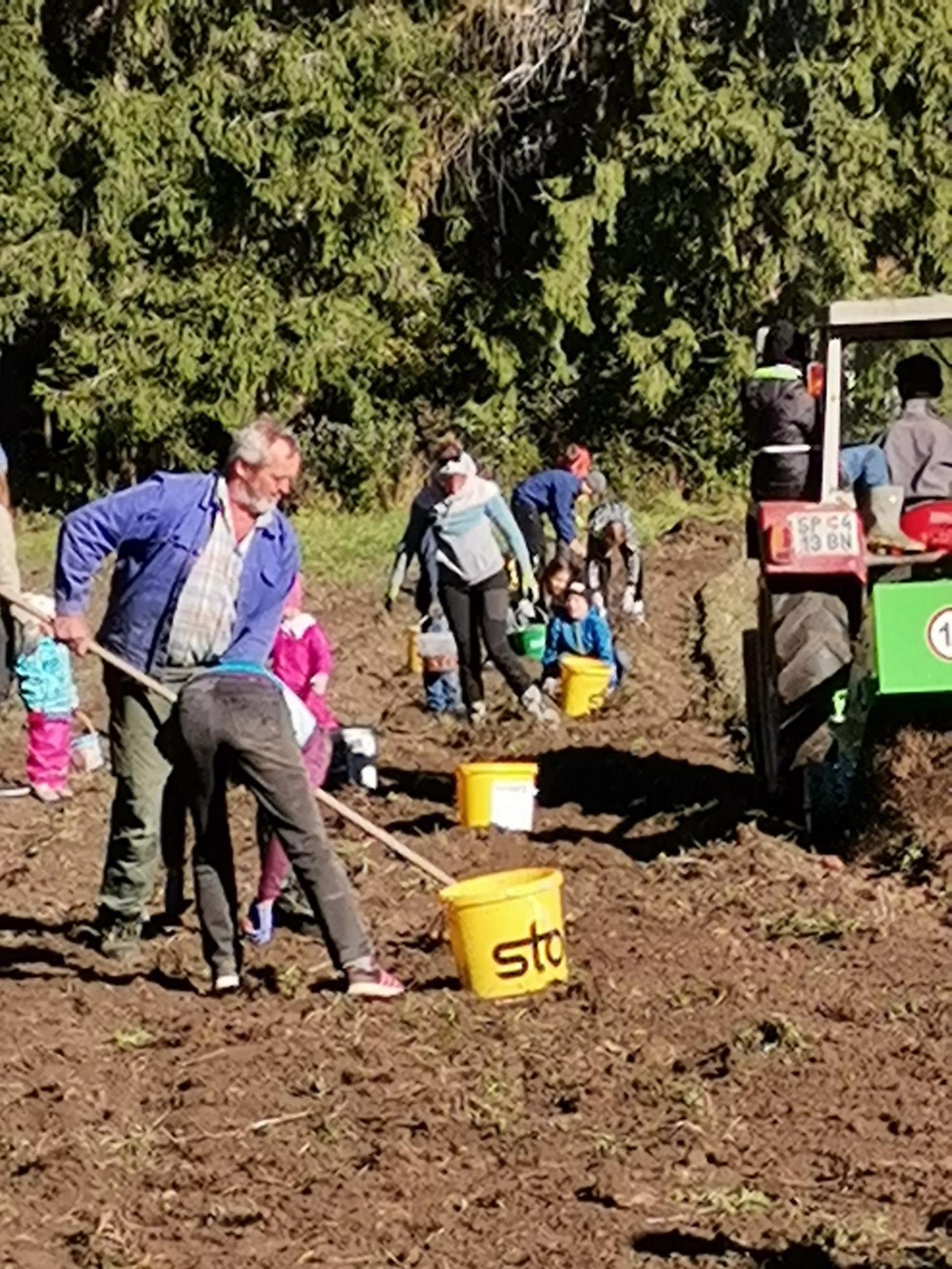 6. Oktober 2025Am Freitag, dem 3. Oktober 2025, traf sich die 1A-Klasse auf Fritzers Erdäpfelacker in Berg im Drautal, um die Bauersleute bei der Ernte zu unterstützen. Jeder hatte dabei die Gelegenheit, mit dem Jungbauern auf dem Traktor mitzufahren und die Erntemaschine bei der Arbeit zu betrachten. Viele fleißige Hände sammelten die unterschiedlichsten Erdäpfelsorten, in Summe waren dies ungefähr zwei Tonnen. Besonders angetan waren die Kinder von den „schwarzen“ Erdäpfeln (Sorte Blaue Schweden). Stärken konnten sich die Erntehelfer dann mit verschiedenen Suppen, Kuchen und Getränken. Als Dank für die Unterstützung durfte sich jeder ein buntes Erdäpfelsackerl zusammensuchen und mit nach Hause nehmen. Danke für Eure Unterstützung!