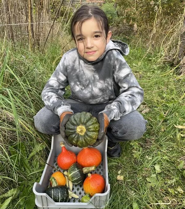 20. Oktober 2025Heute, am 20. Oktober 2025, haben wir in der Tabe gemeinsam die Kürbisse geerntet. Der heurige Ertrag ist klein, aber fein, ein paar Kürbisse sind schon vor uns von jemand anderem geerntet worden …
