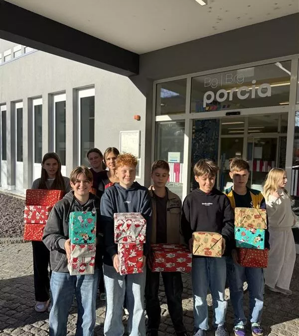 17. November 2025Alle Jahre wieder beteiligen sich die Schülerinnen und Schüler des Porciagymnasiums an der Weihnachtspackerl-Aktion (österreichweit initiiert von Round Table und Agora Club). Unter dem Motto „Kinder helfen Kindern“ werden liebevoll gestaltete Geschenkpakete gesammelt, die zu Weihnachten an bedürftige Kinder in rumänischen Kinderheimen verteilt werden.