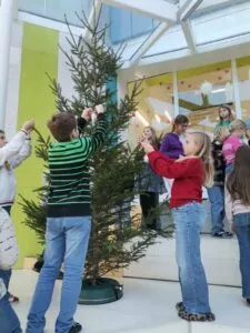 22. Dezember 2025Am 10.12. fanden sich die Kinder der 1A-Klasse in der Arena ein, um den von Peter Fleissner gesponserten Baum mit ihren selbst gebastelten Wichteln und Engeln zu schmücken. Unterstützt wurden sie dabei von den Schülerinnen und Schülern der 7AG- und 8AG-Klasse.