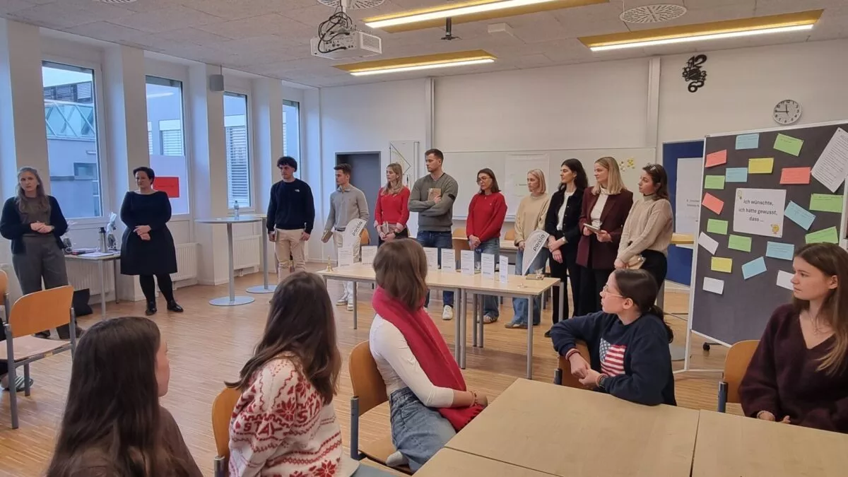 Neben der Podiumsdiskussion für die vierten Klassen gab es ein zusätzliches Gesprächsformat für die achten Klassen. Hier konnten die Jugendlichen in einem persönlichen Rahmen Fragen zu Studienrichtungen, Ausbildungsorten, Einstiegsproblemen und verschiedenen Berufsfeldern stellen. Die offenen Gespräche ermöglichten wertvolle Einblicke und halfen den Schülerinnen und Schülern, ihre nächsten Schritte bewusst zu planen.