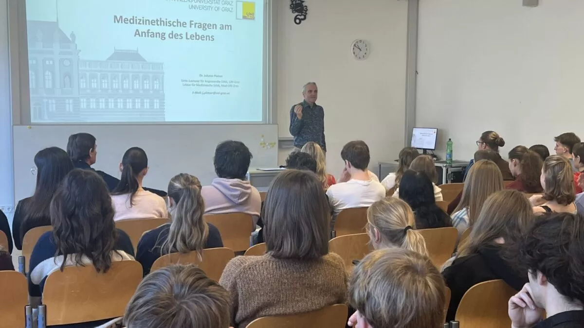 26. Februar 2026Ethische Fragen am Lebensanfang und am Lebensende standen beim Workshop mit unseren drei 8. Klassen im Vordergrund. Dr. Johann Platzer von der Karl–Franzens–Universität Graz, Theologe und Ethiker, gab Impulse und einen Leitfaden zum Nachdenken über ein würdiges Sterben und behandelte dabei auch verschiedene medizinethische Fragestellungen.