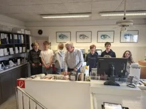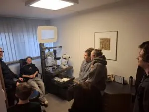 Im „Raum der Linsen“ wurden uns weiche und harte Kontaktlinsen gezeigt. Wir haben ihre Unterschiede, Vorteile und Einsatzgebiete kennengelernt. Zum Schluss wurden Brillengläser in der Werkstatt geschliffen, also Brillen in Handarbeit hergestellt – ein selten gewordenes Handwerk, das viel Genauigkeit verlangt. Der Besuch zeigt, wie viel Physik in einer Brille steckt – vielen herzlichen Dank an das Team von Optik Nitsch für die interessanten Ein- und Ausblicke!