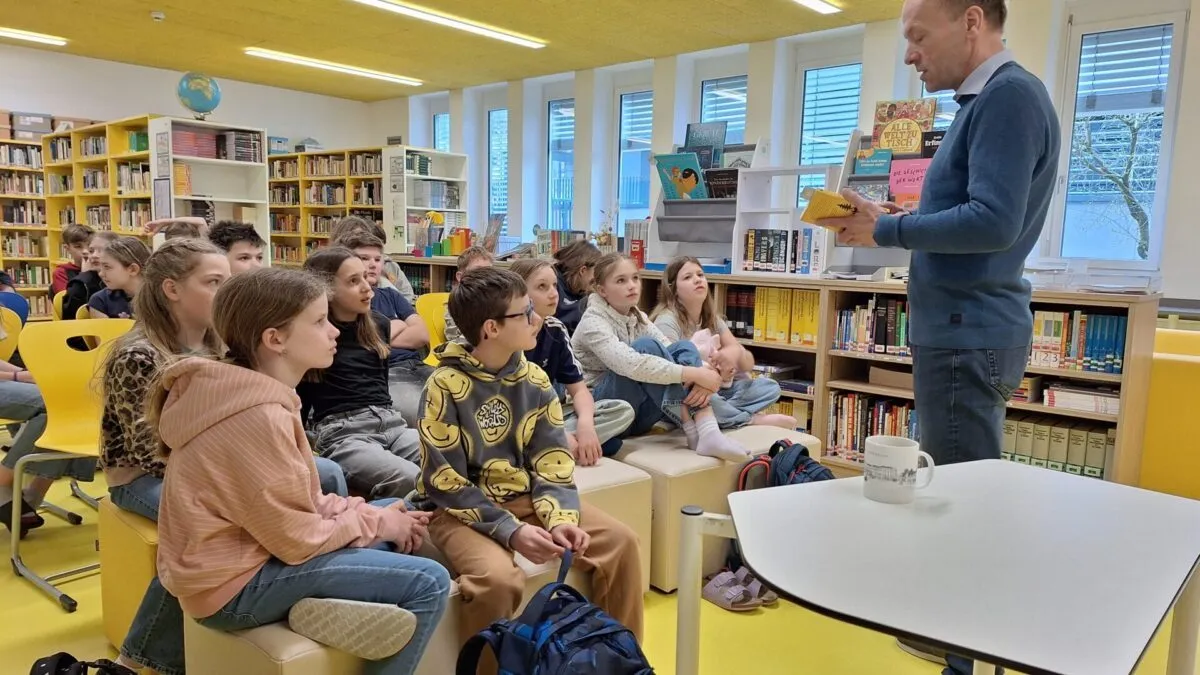 27. März 2026Anlässlich des Österreichischen Vorlesetages am 26. März 2026 kamen auch Schülerinnen und Schüler des Porciagymnasiums in den Genuss dessen, dass ihnen vorgelesen wurde. In der Schulbibliothek las Prof. Ralf Isensee Jugendlichen aus mehreren Klassen (1a, 1c, 1s, 3a, 3bg) vor. Zu hören bekamen sie Ausschnitte aus der Erzählung „Wolf“ von Saša Stanišić und das berühmte Schiller-Gedicht „Das Lied von der Glocke“.