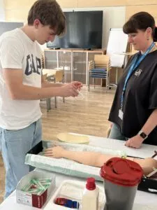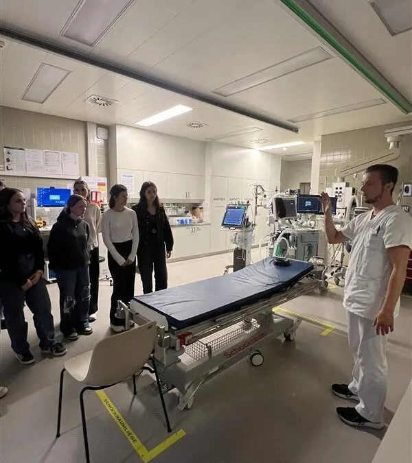 19. April 2026Die Wahlpflichtfachgruppe Biologie der 8. Klassen durfte am 16. April 2026 einen spannenden Blick hinter die Kulissen des LKH Villach werfen. OP‑Outfit anziehen, OP‑Instrumente in die Hand nehmen, Venen legen, Blut abnehmen, Hygiene testen, Schock- und Röntgenraum besuchen, die Arbeit im Labor sehen – und sogar der Hubschrauberlandeplatz stand auf dem Programm! Ein großes Dankeschön an das Team des LKH Villach für diese praxisnahen und beeindruckenden Einblicke in den Krankenhausalltag.